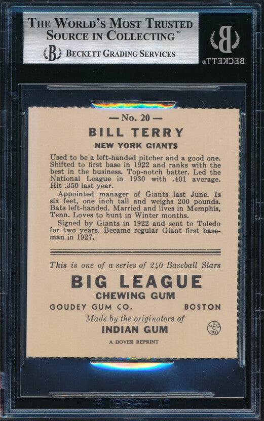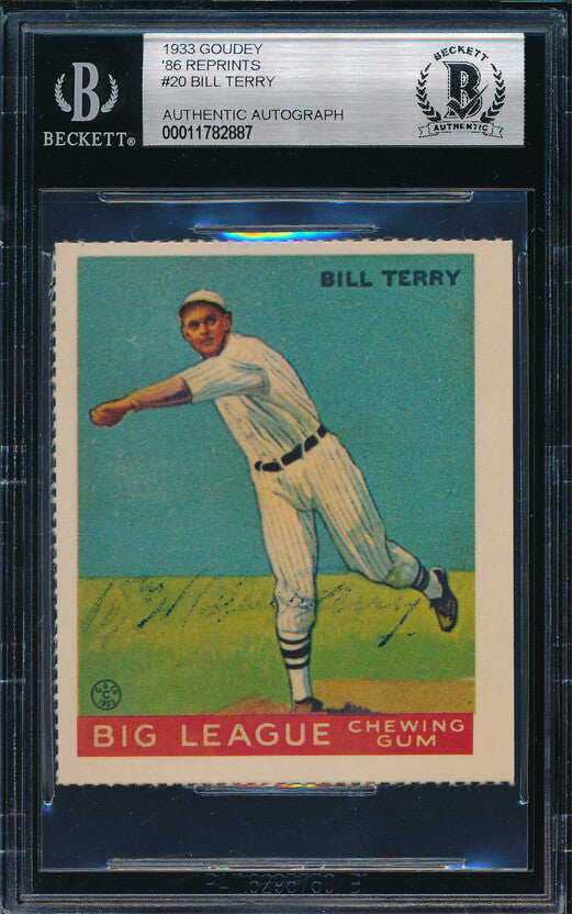 1933 Goudey Reprint Baseball #20 Bill Terry Autograph Beckett Authentic p03144