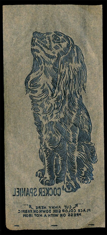 1940's Vintage Paper Iron On Animals Cocker Spaniel Unused EX c06104