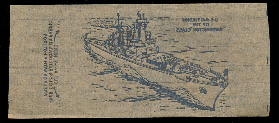 1940's Vintage Paper Iron On U.S.Battleship Washington Class Unused EX c06089