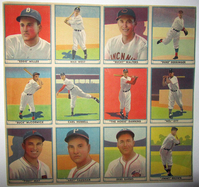 1941 Playball Paper Uncut Sheet of 12 with 3 Hall of Famers Vg