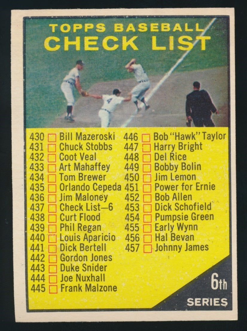1961 Topps Baseball #437 6th Checklist NMMT oc c03699