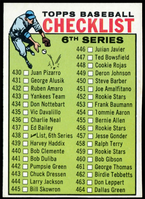 1964 Topps Baseball #438 6th Series Checklist NMMT c01683