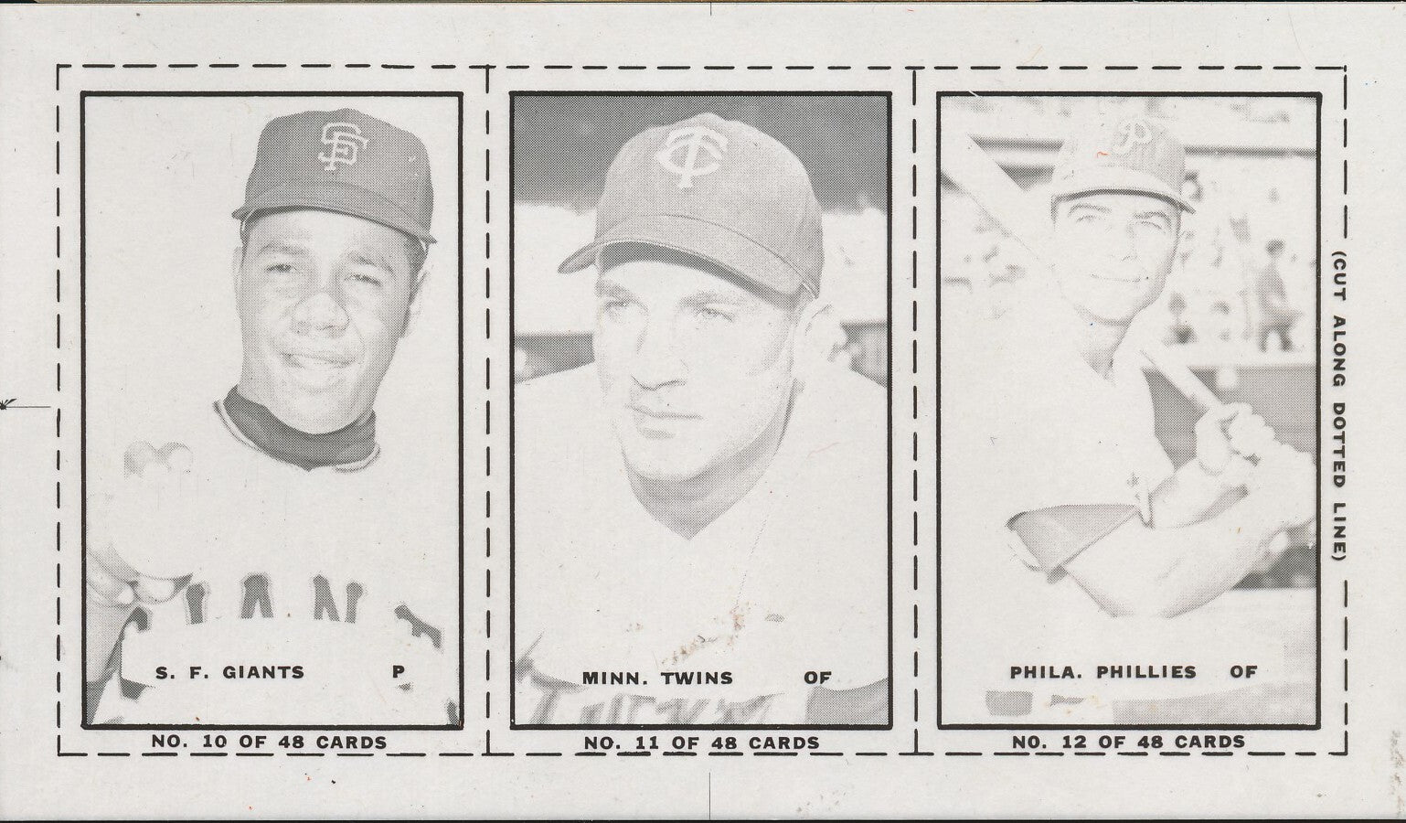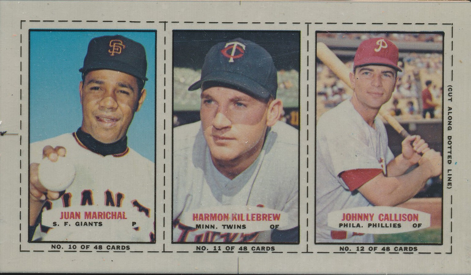 1967 Bazooka Panel #10-12 Acetate Proof Set of 4. Marichal, Killebrew, Callison