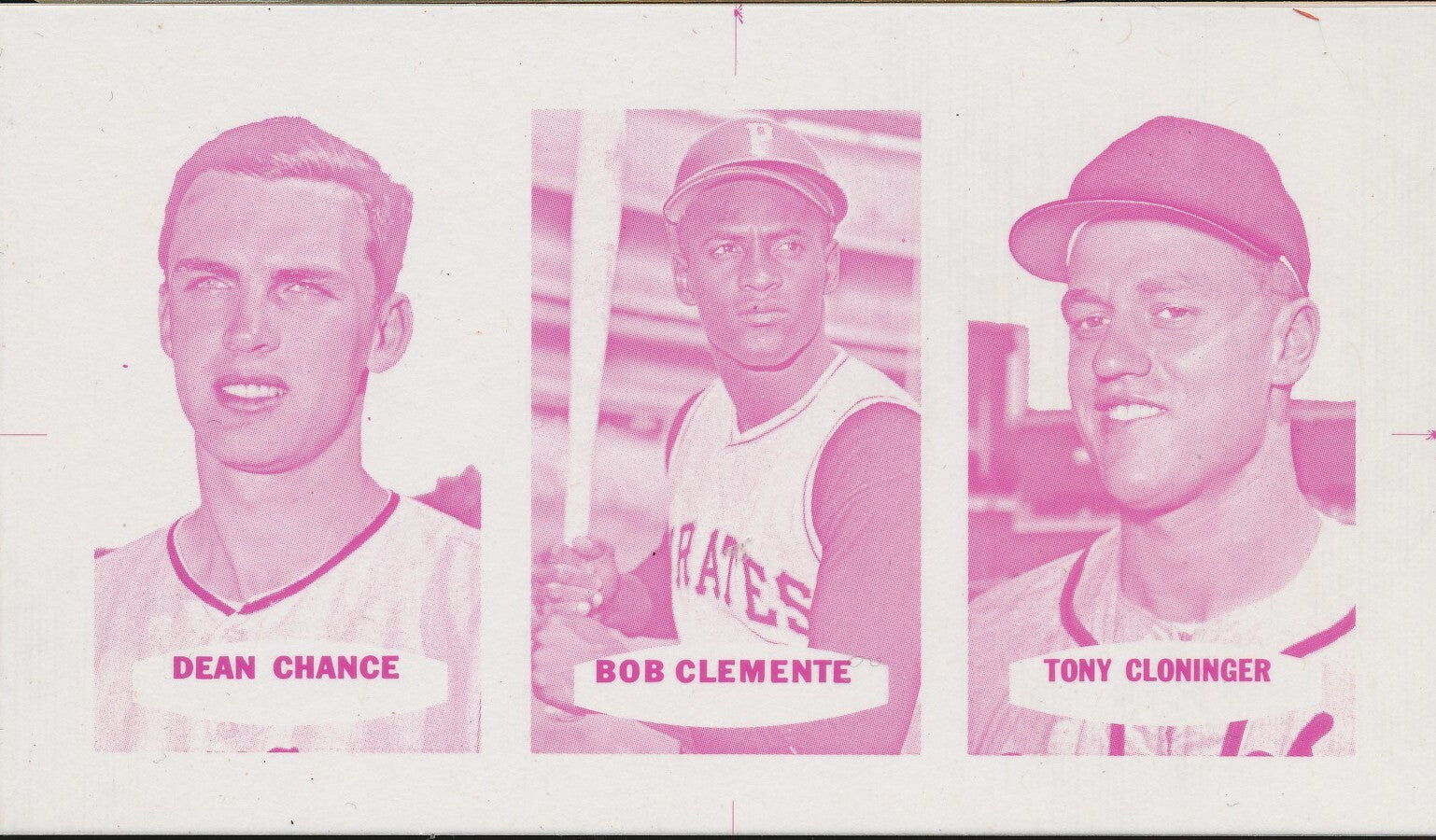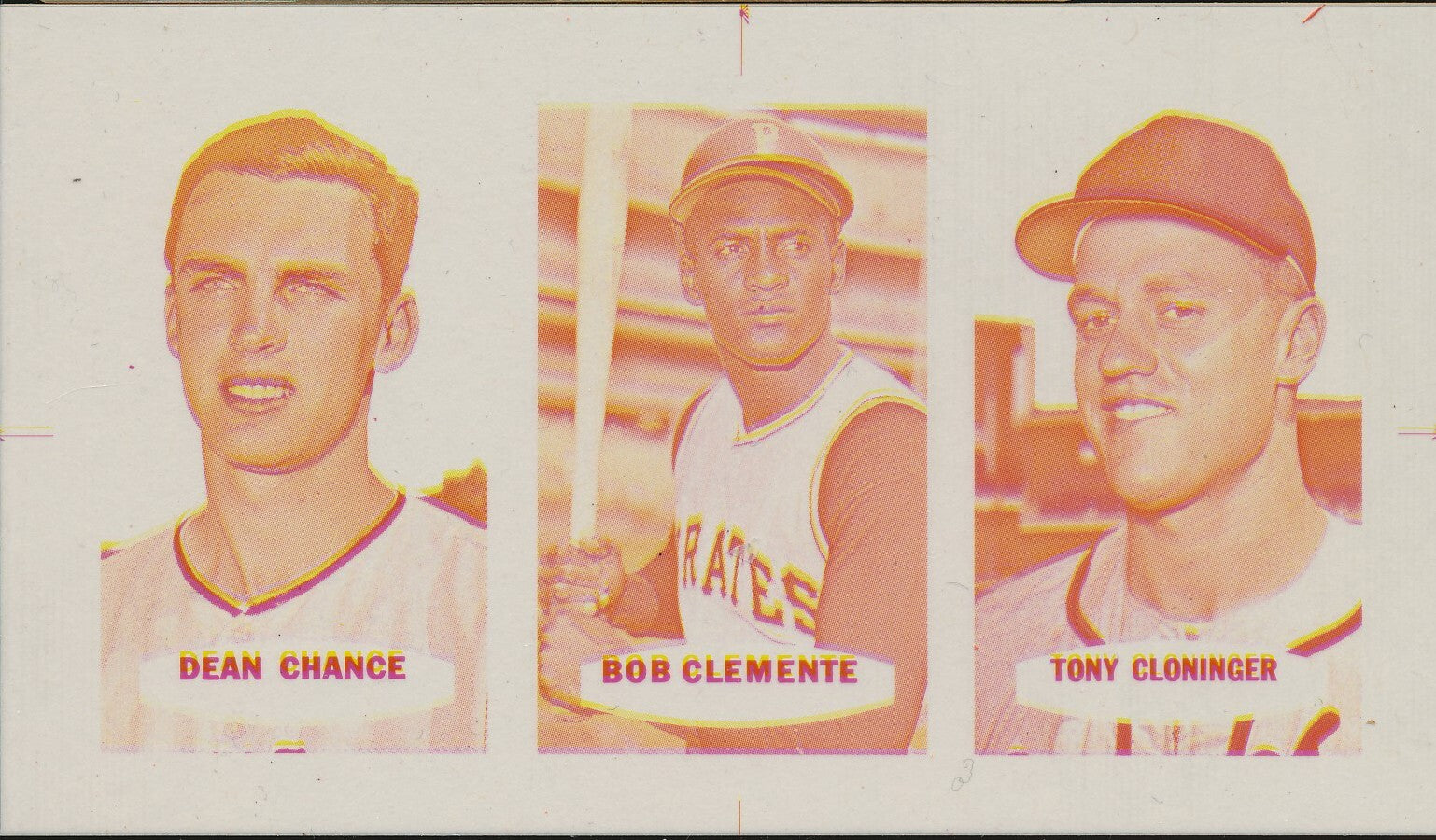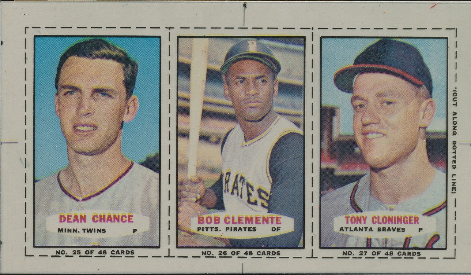 1967 Bazooka Panel #25-27 Acetate Proof Set of 4. Chance, Clemente, Cloninger