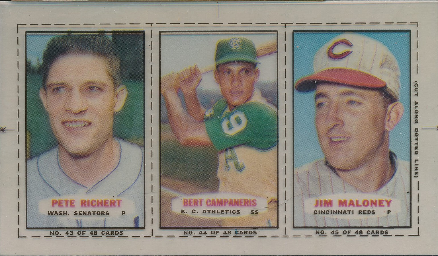 1967 Bazooka Panel #43-45 Acetate Proof Set of 4. Richert, Campaneris, Maloney