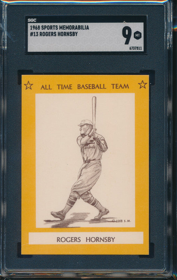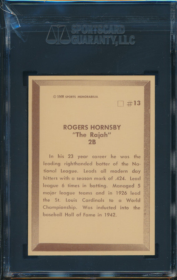 1968 Sports Memorabilia Baseball #13 Rogers Hornsby SGC 9 MT p03046 Low Pop