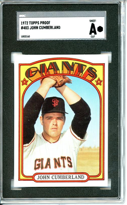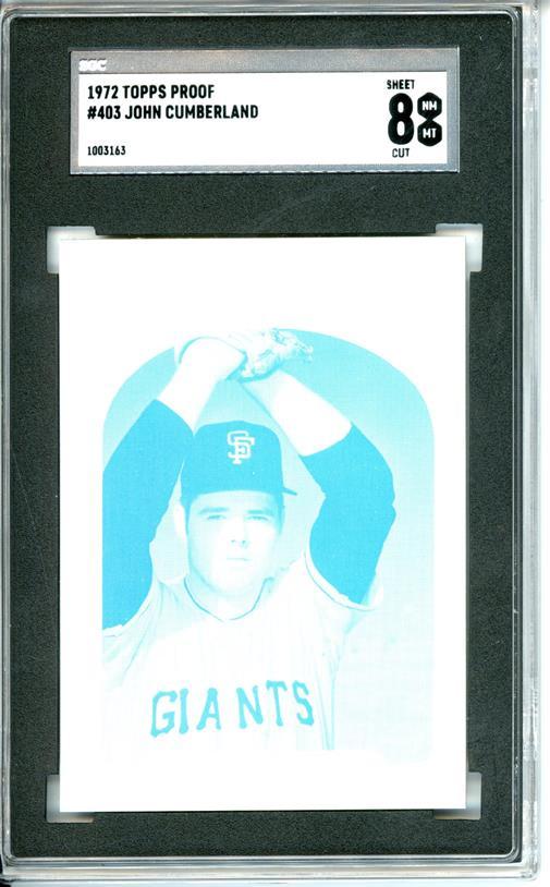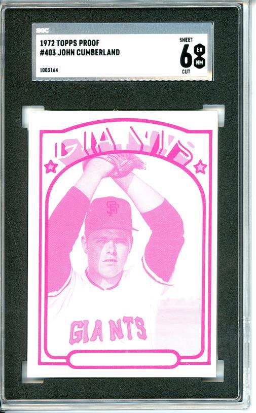 1972 Topps #403 John Cumberland 6 card progressive proof. 66a