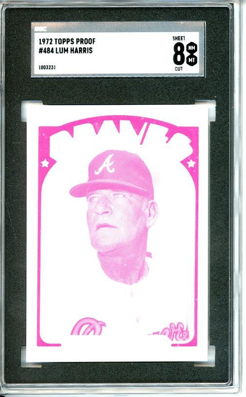 1972 Topps #484 Lum Harris 7 card progressive proof. 27a
