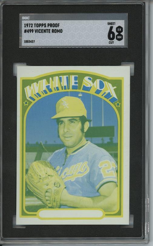 1972 Topps #499 Vincente Romo 6 card progressive proof. 55a