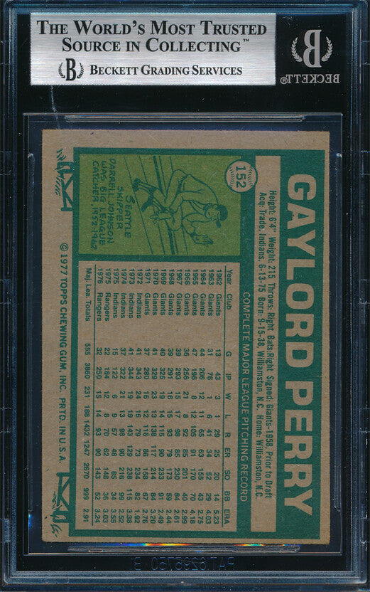 1977 Topps Baseball #152 Gaylord Perry Autographed Beckett Authentic p03189