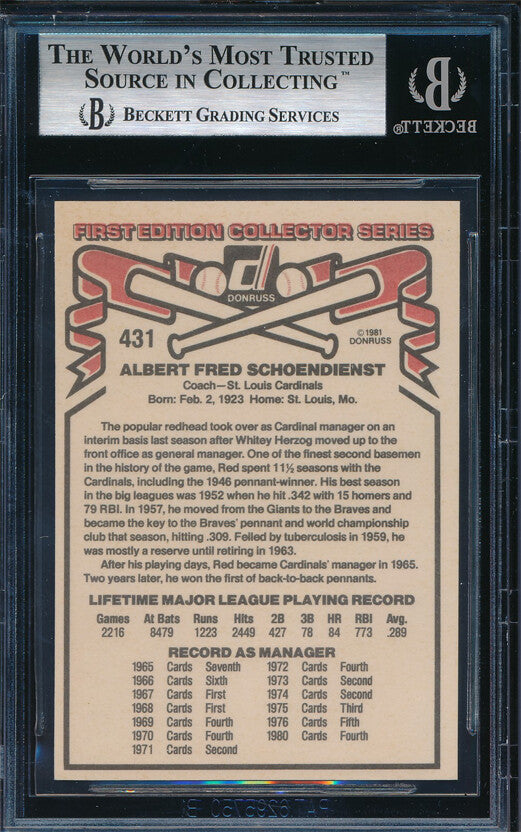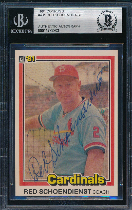 1981 Donruss Baseball #431 Red Schoendienst Autographed Beckett Authentic p03152