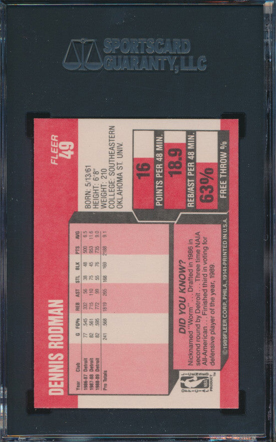 1989 Fleer Basketball #49 Dennis Rodman SGC 9.5 p03432