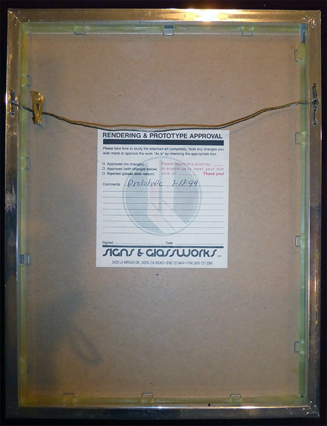 This is an extremely rare and probable 1 of a kind item. The prototype measures 8 3/4" x 12" and is framed. Back has ID sticker stating prototype.