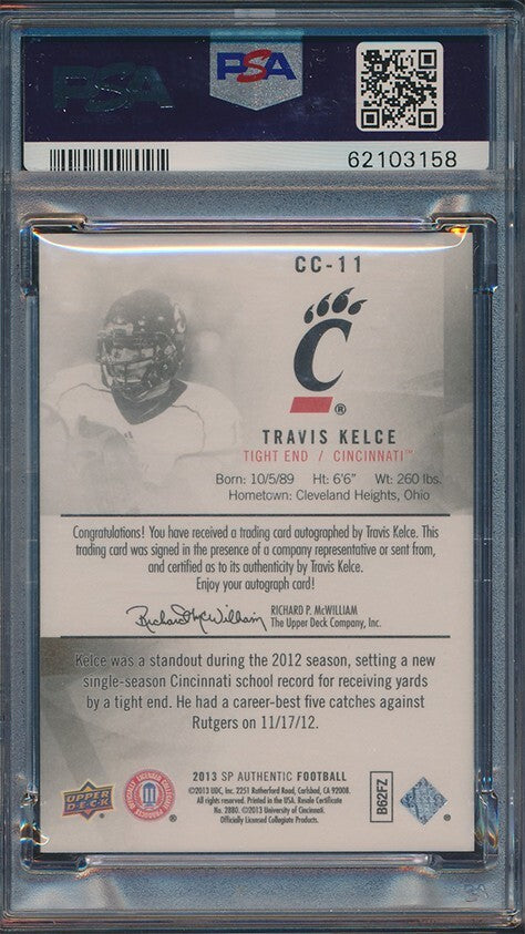 2013 SP Authentic FB #CC11 Travis Kelce Cnvas Collection Auto PSA 9 MINT