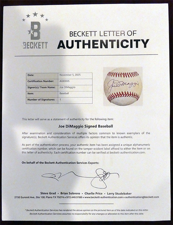 Joe DiMaggio Single Signed Bobby Brown Baseball - Beckett COA